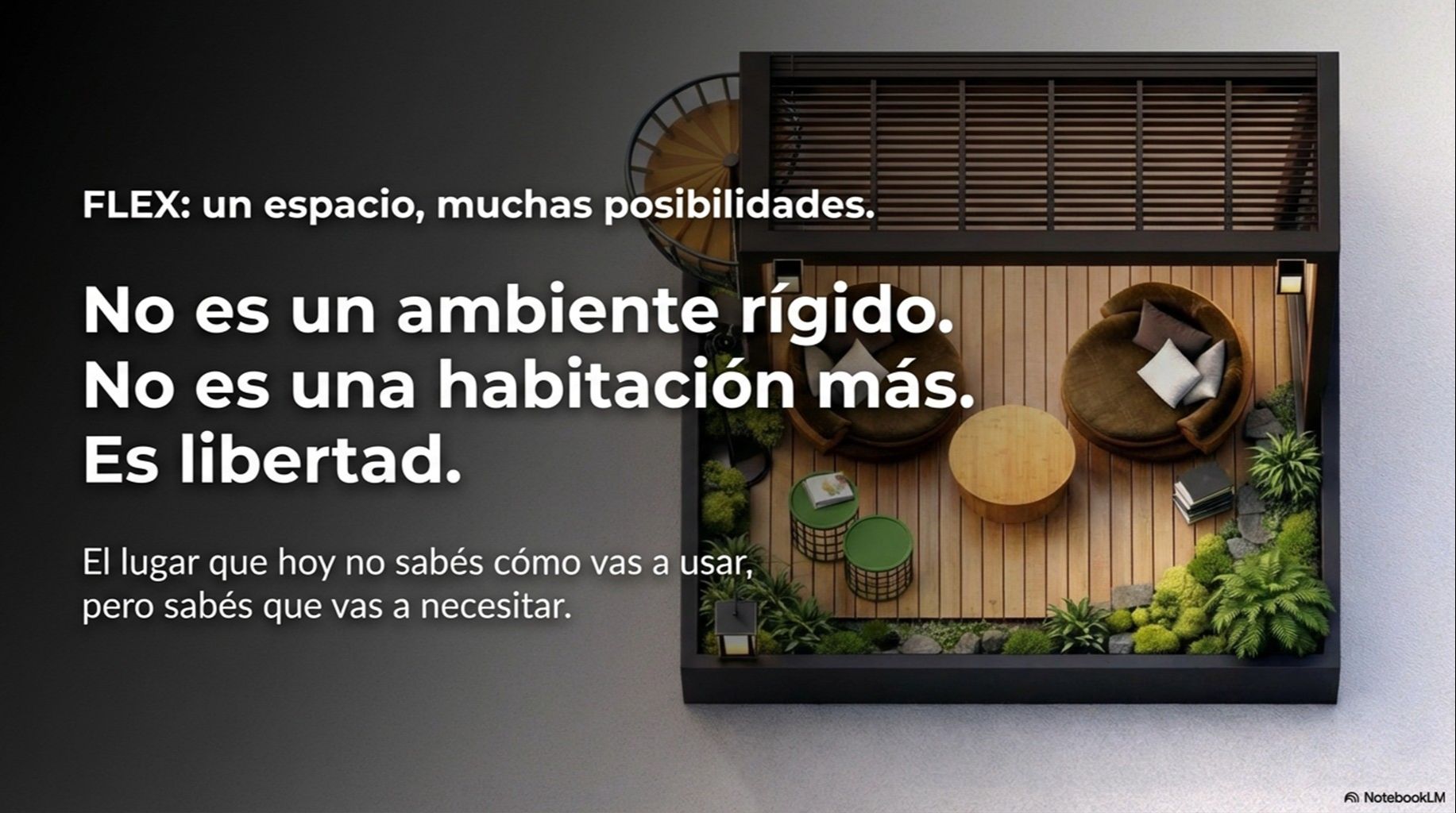 Sumás un espacio FLEX que cambia con vos: oficina, playroom, relax o cuarto extra.