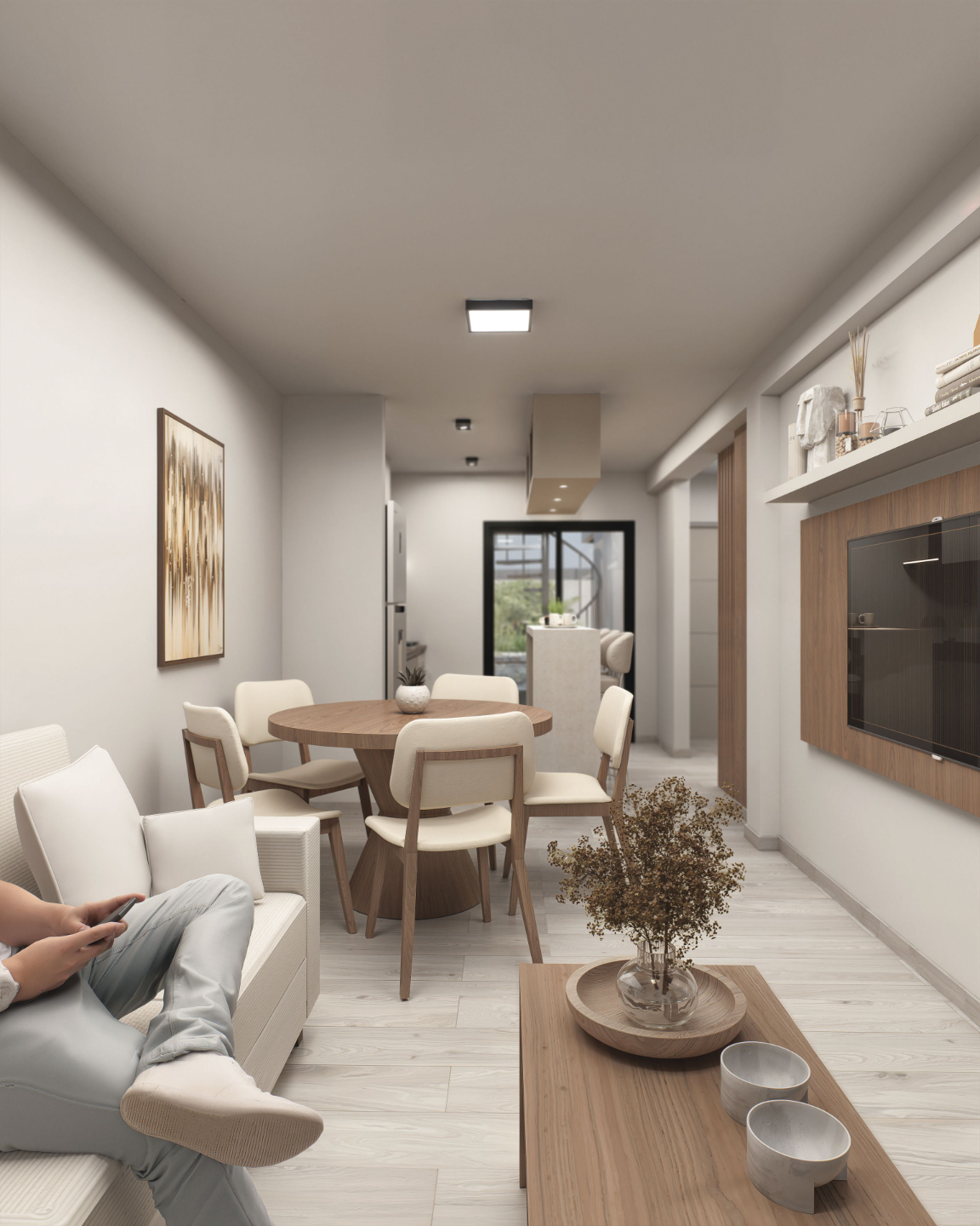 DuFlex propone una lógica simple y efectiva: vida social abajo, descanso arriba. Cocina, comedor y living integrados para que todo fluya; y un toilette de recepción que suma comodidad real. Arriba, la zona privada se siente privada, con dormitorios definidos y el extra FLEX listo para evolucionar.